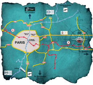 [EN] From Paris, take the A4 motorway eastbound in the direction of Metz/Nancy (23 km). Then, take the A104 northward in the direction of Lagny til the motorway exit n°10 Vaires St Thibault (4 km). Follow the signs « Parc de Loisirs de Torcy ».